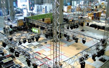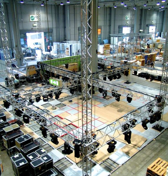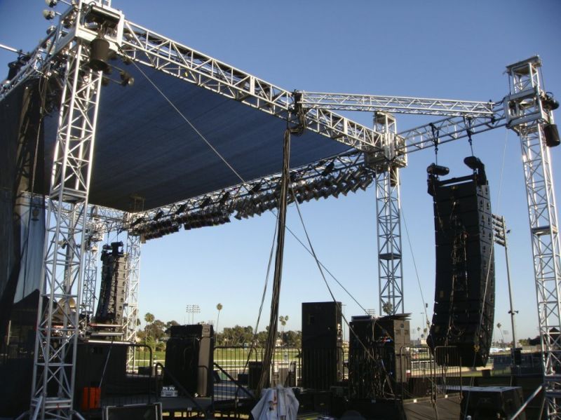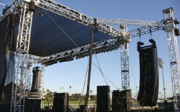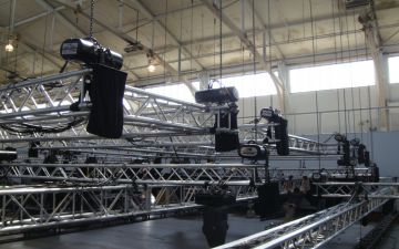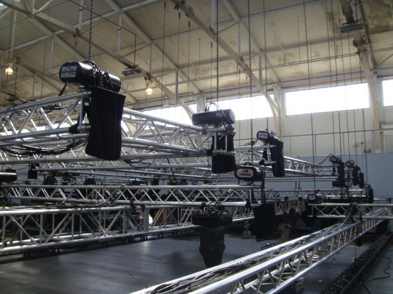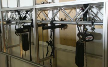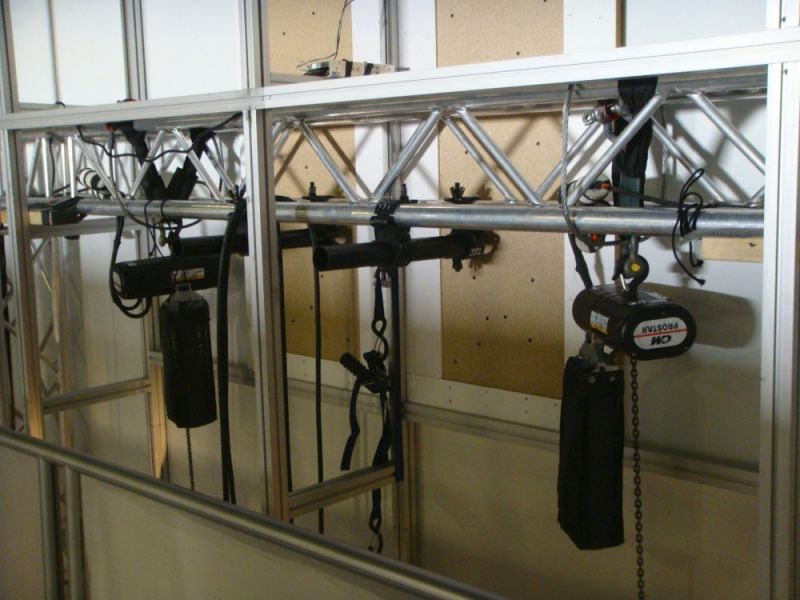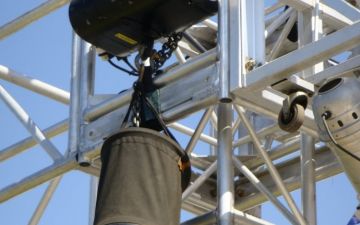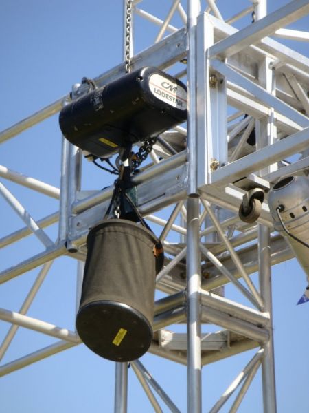 We provide trusses and other means of suspension as required in just about any quantity and rigging configuration. We interface with venue personnel to determine how to safely attach to the building structure. In situations where ground support is the way to go, we provide something as simple as Genie lifts in the required number and configuration, or for heavier lift operations, 18″ self-climbing towers. Rigging is included in many of our event packages but is also offered as a separate service on events where it is all that is required. Our certified riggers love a challenge and can come up with safe and effective solutions where others fail.
